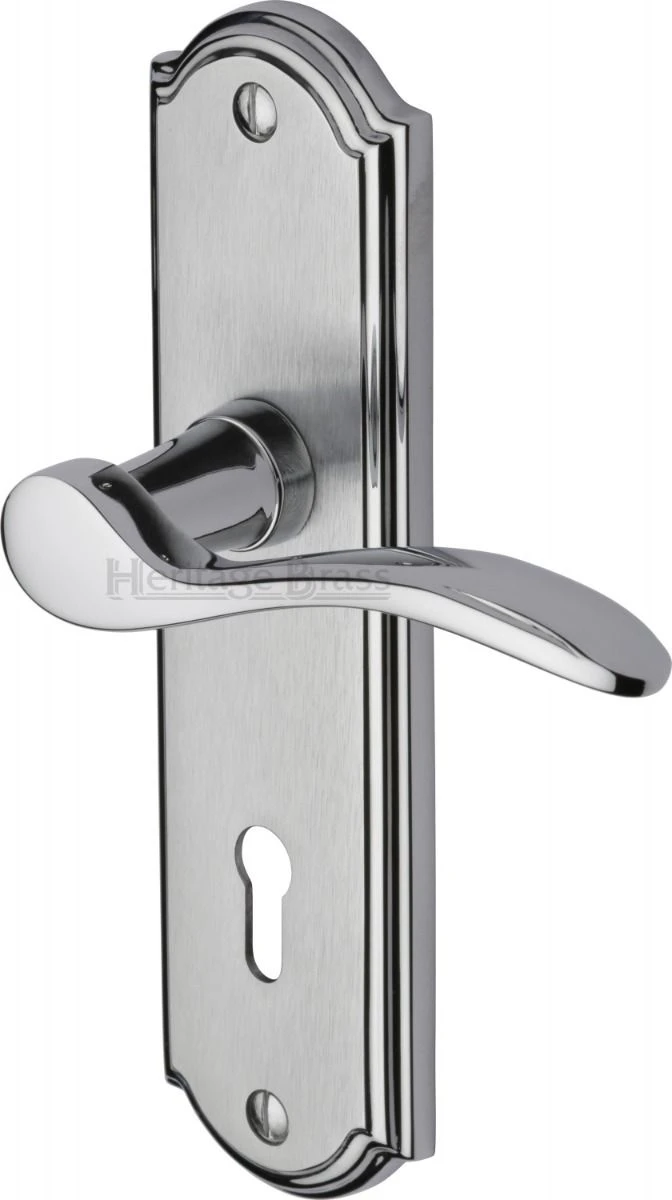 Howard Lever Door Handles On A Backplate – Satin Chrome With Polished Chrome Edge