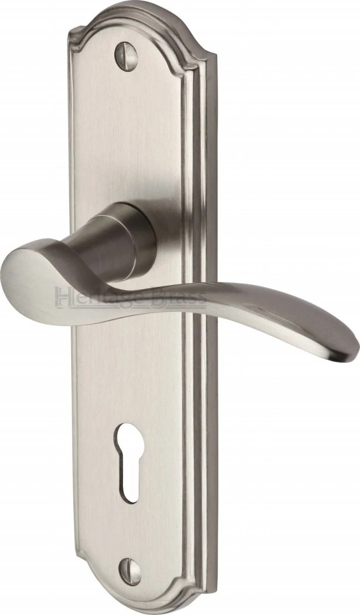 Howard Lever Door Handles On A Backplate – Satin Nickel