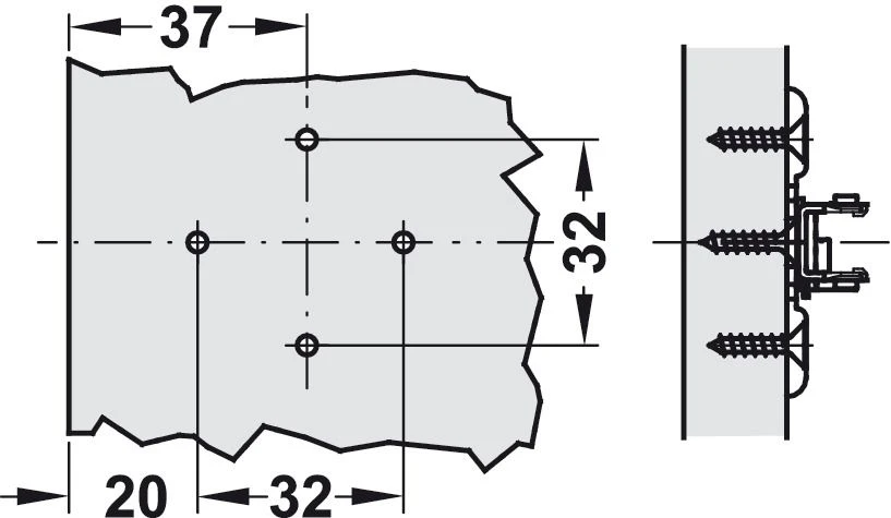 - Comes supplied with adjustable clip on mounting plate and  screws to suit 18mm thick door and carcass.