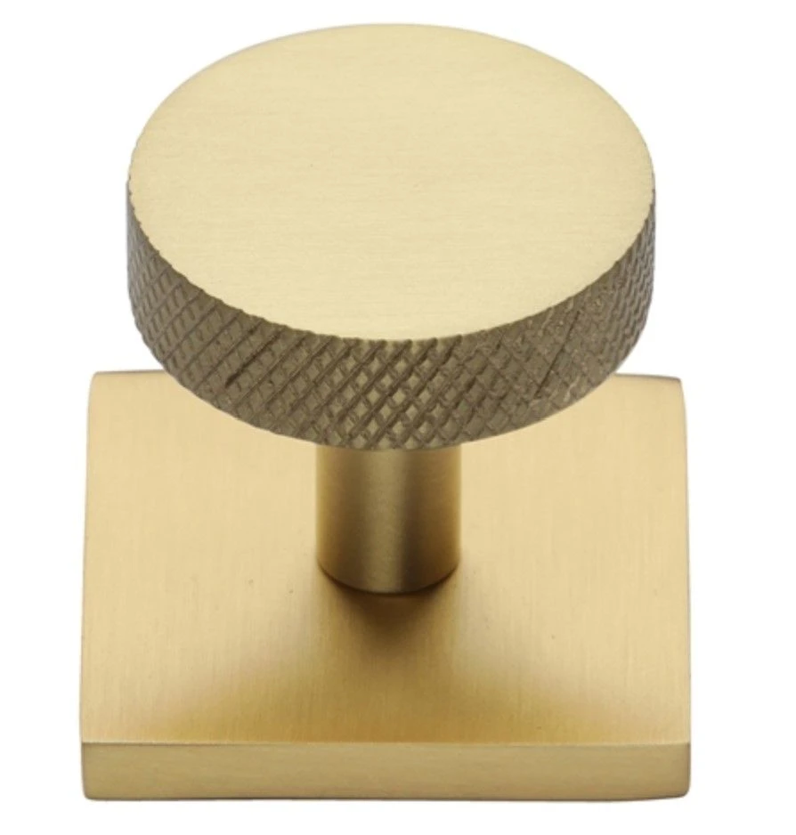 - Knurled disc cabinet knob with square backplate