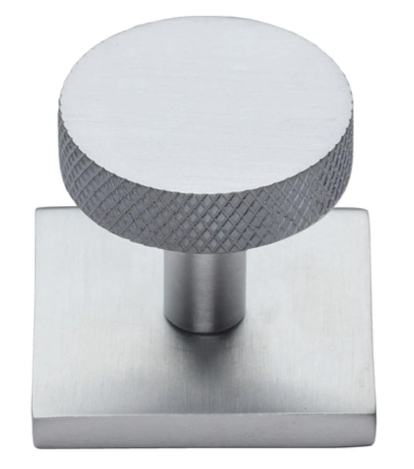 - Knurled disc cabinet knob with square backplate