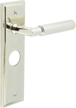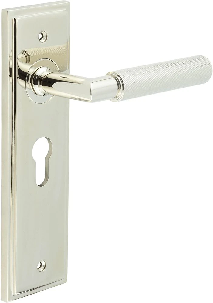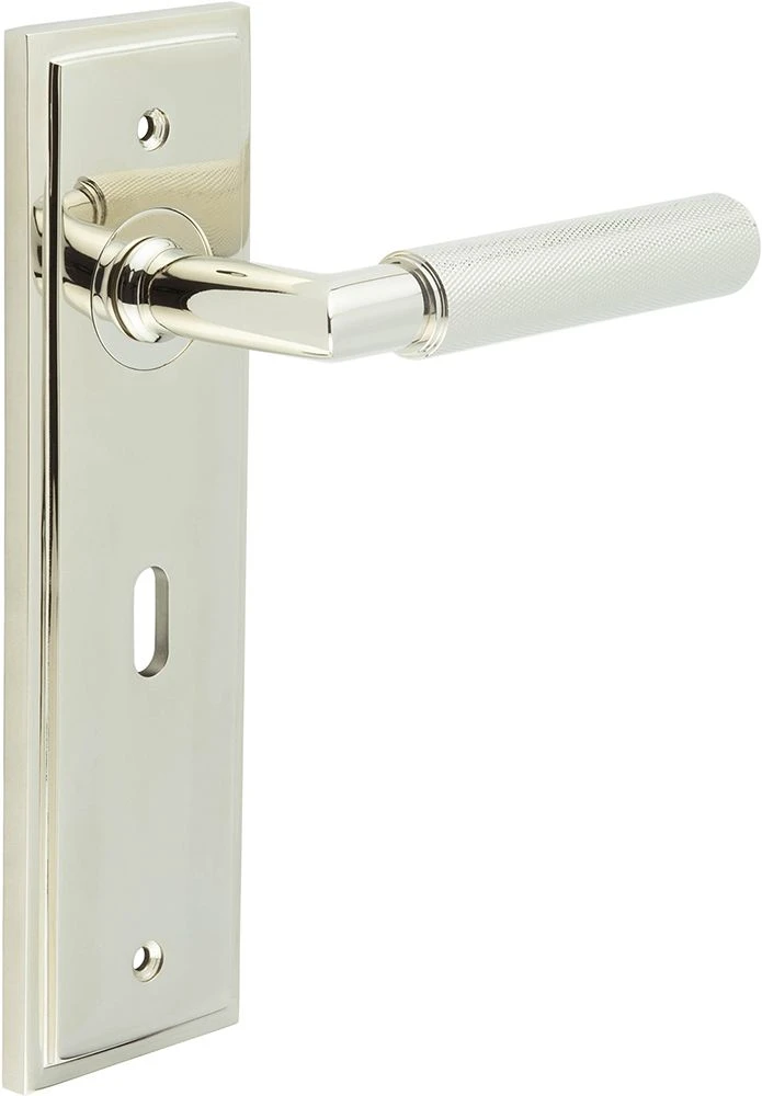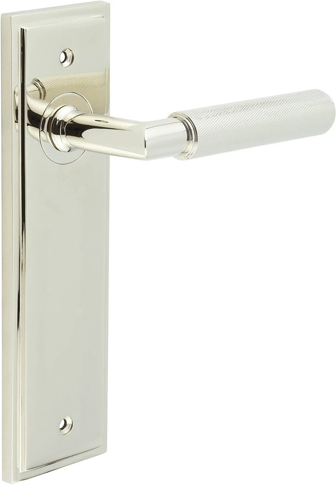 - Knurled Pattern Lever Handle On A Large Rectangular Backplate