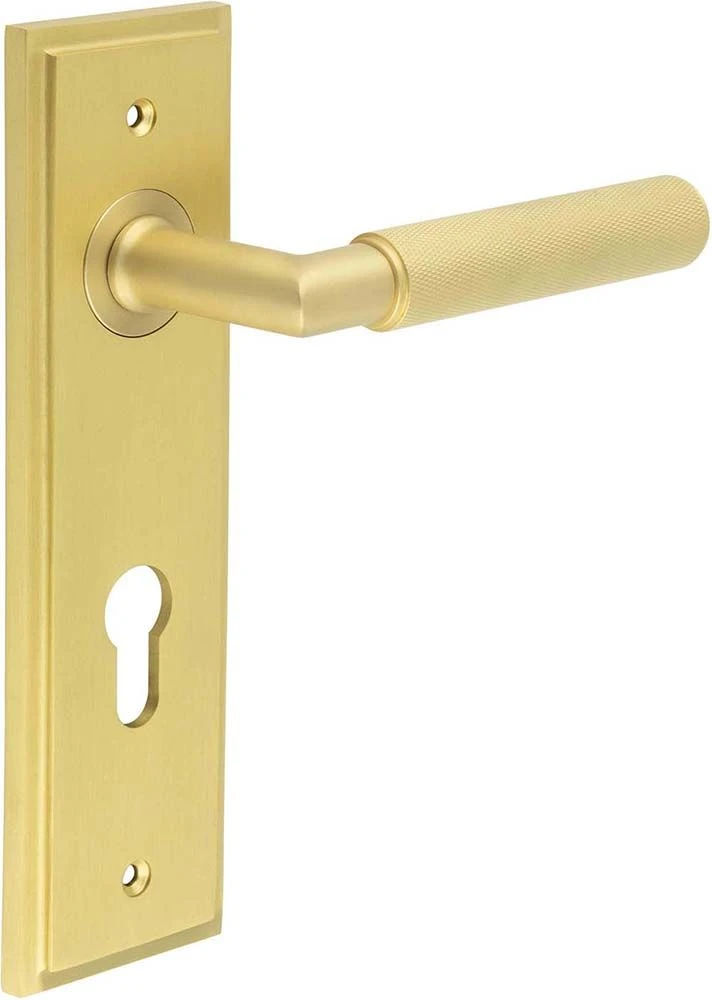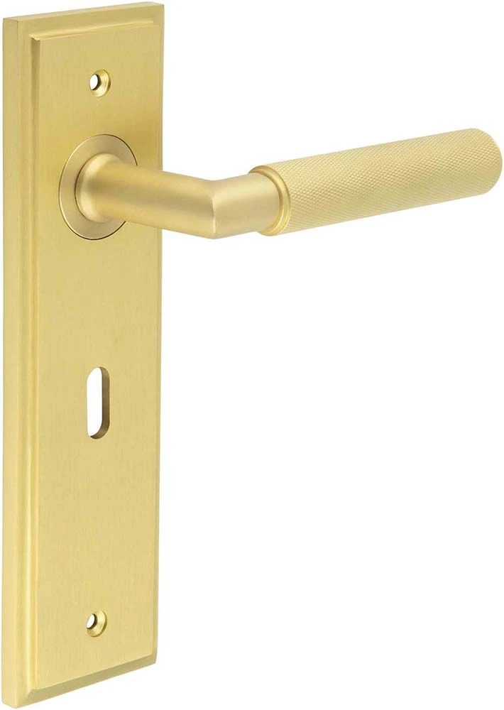 - Knurled Pattern Lever Handle On A Large Rectangular Backplate