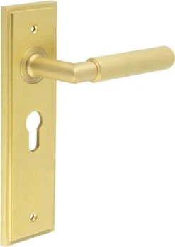 - Available in various plate designs including latch set for non locking doors, lock set for key locking doors, bathroom set that locks via a thumbturn and can be released in an emergency via a coin release on the outside handle, and a euro profile set for use with euro profile cylinders.