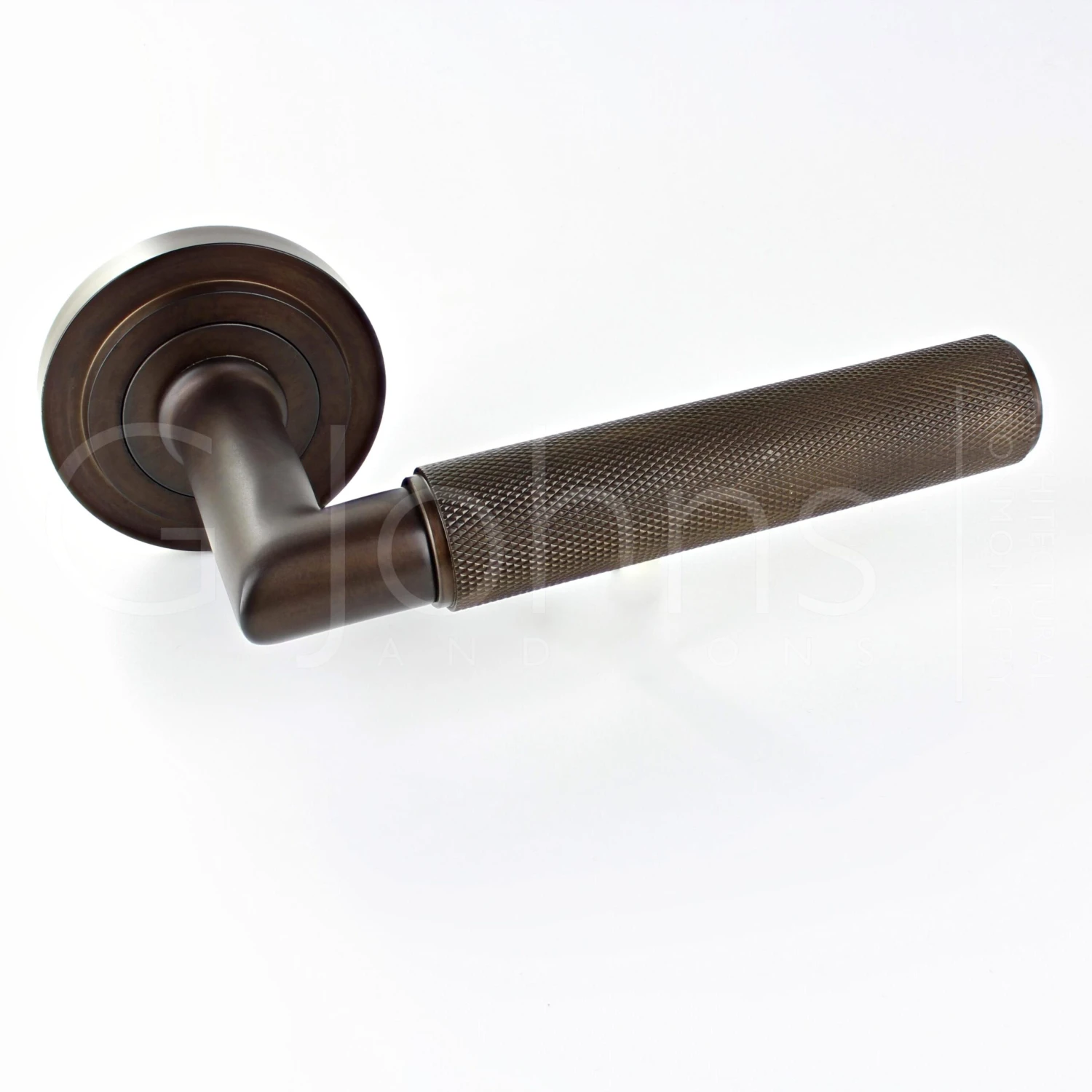 - DarkbBronze knurled pattern lever handles with stepped pattern concealed fix rose.