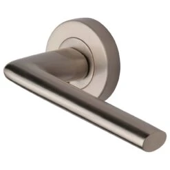 - Lena Lever Handles – On Round Rose – Satin Nickel – M Marcus