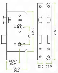 - Separate deadbolt with 78mm centres and 60mm backset