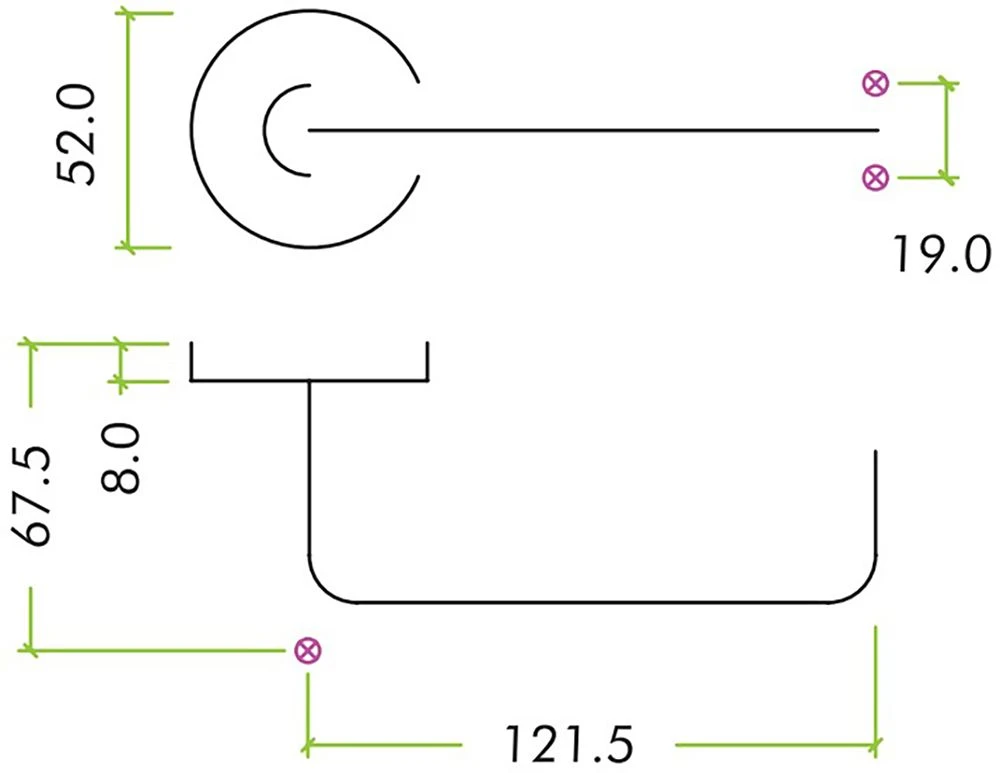 - 19mm diameter return to door handle