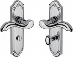 ![Example of a bathroom turn and release lever set]()