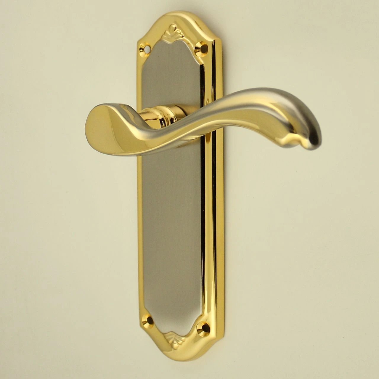 - The split finish Lisboa lever suite from M Marcus is a traditional design handle with a shaped backplate and a scrolled design lever.