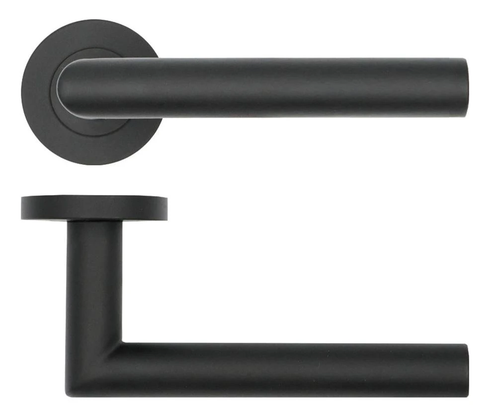 - Straight mitred design round rose lever handles