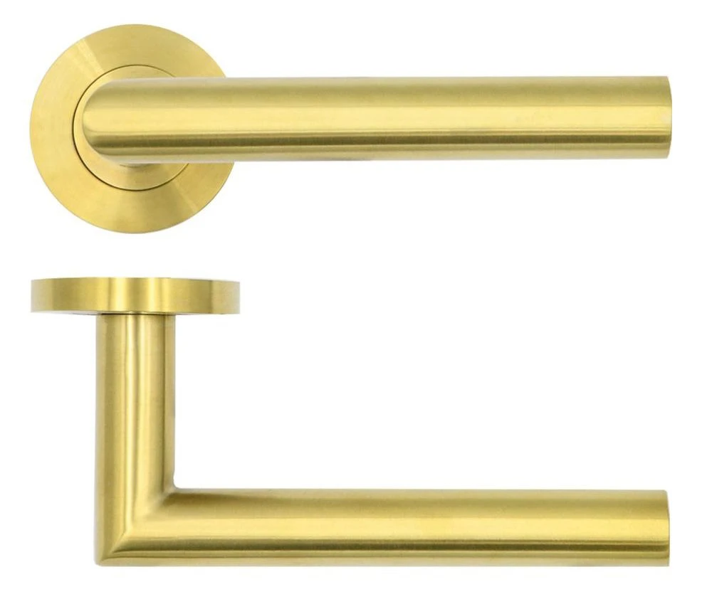 - Straight mitred design round rose lever handles