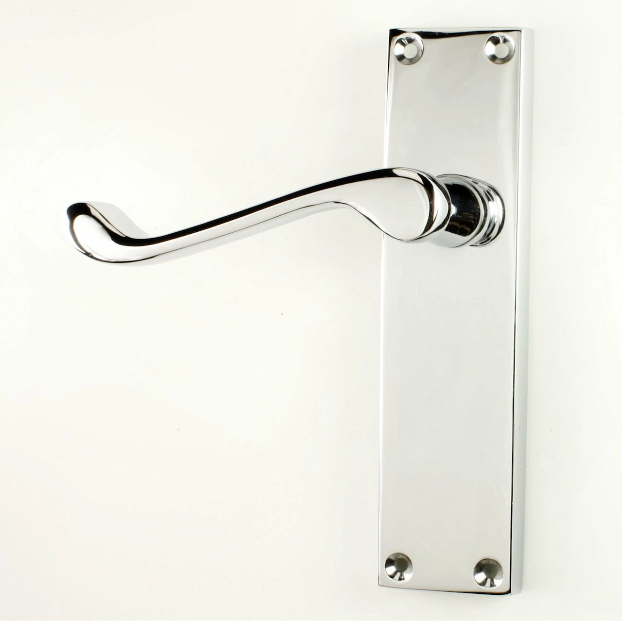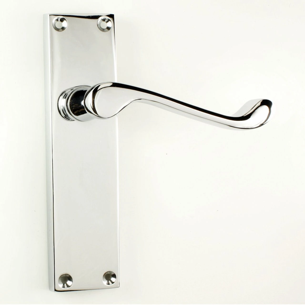 - These traditional Victorian style handles have a scrolled shaped lever fitted to a rectangular backplate