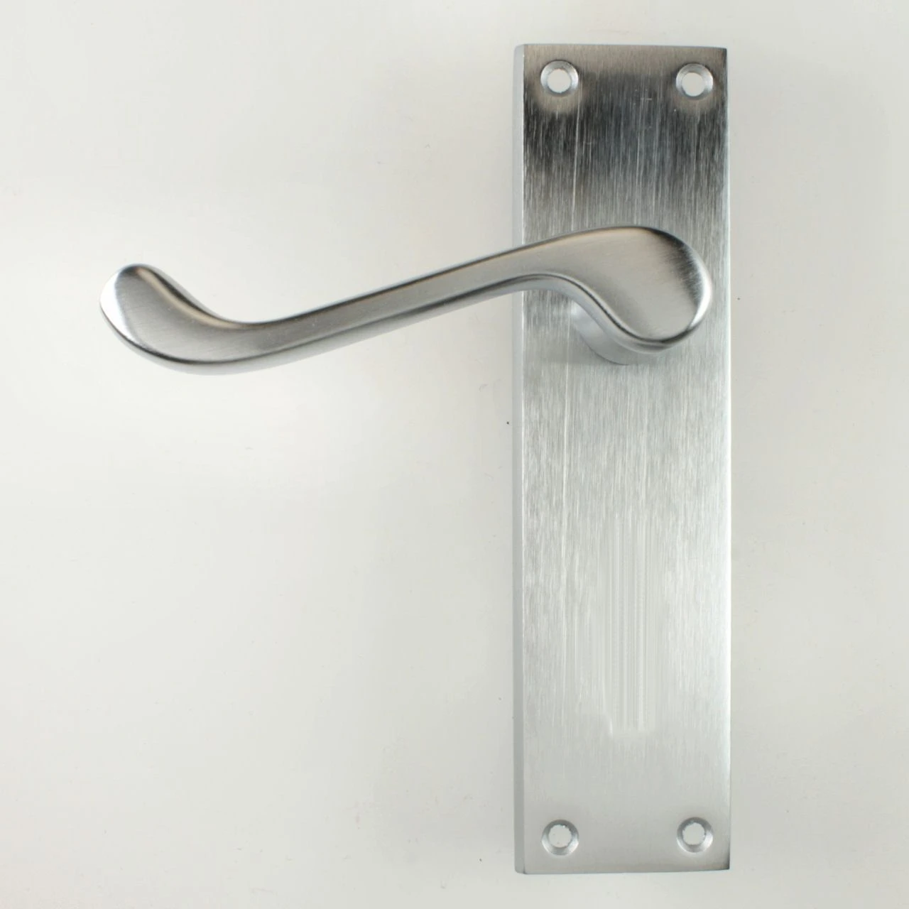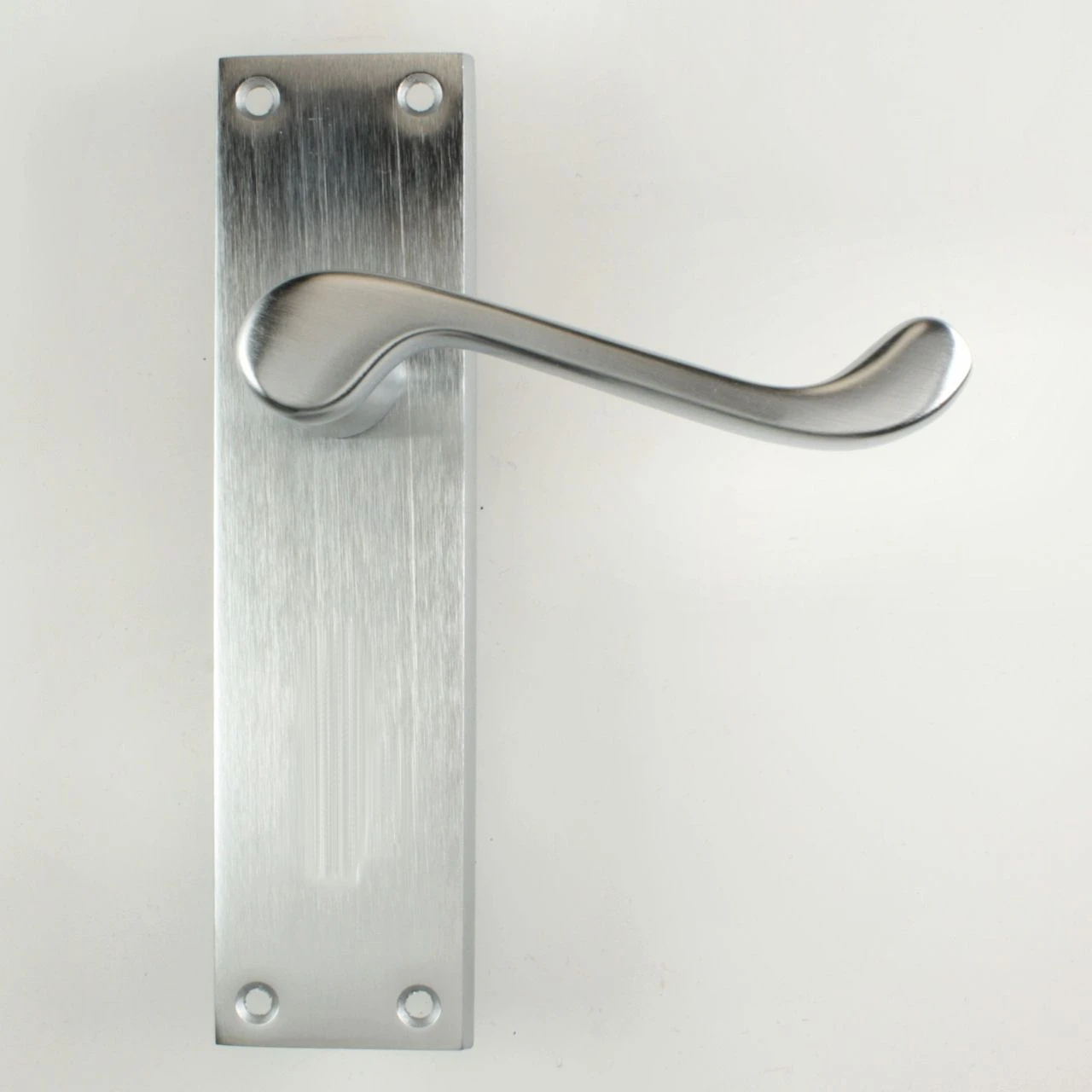 - These traditional Victorian style handles have a scrolled shaped lever fitted to a rectangular backplate.