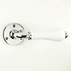 - The PLWCP porcelain levers are traditional round rose lever handles from Carlisle Brass. These classic Victorian design door handles feature a plain white porcelain lever fitted to polished chrome rose.