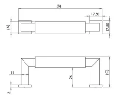 | Item code | Overall Length(B) | Fixing Centres | Width(A) | Projection(C) Wth Base Plate | Projection Wthout Base Plate |