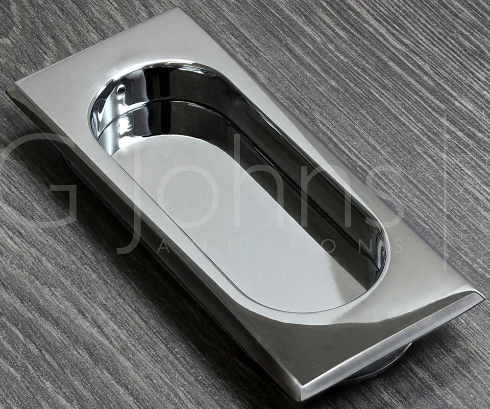 - Rectangular shape flush fitting inset handle for sliding doors.
