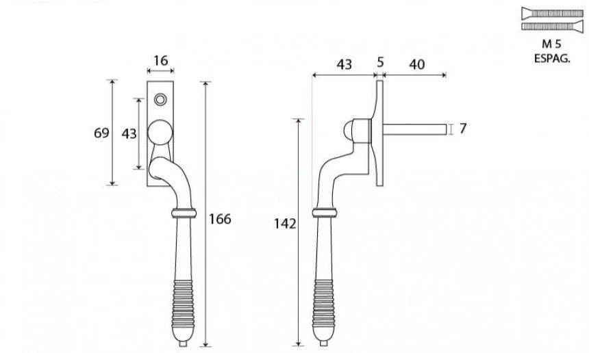 Reeded Espagnolette Handle – Window Fastener – Left & Right Hand – Polished Nickel
