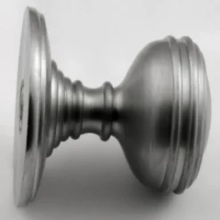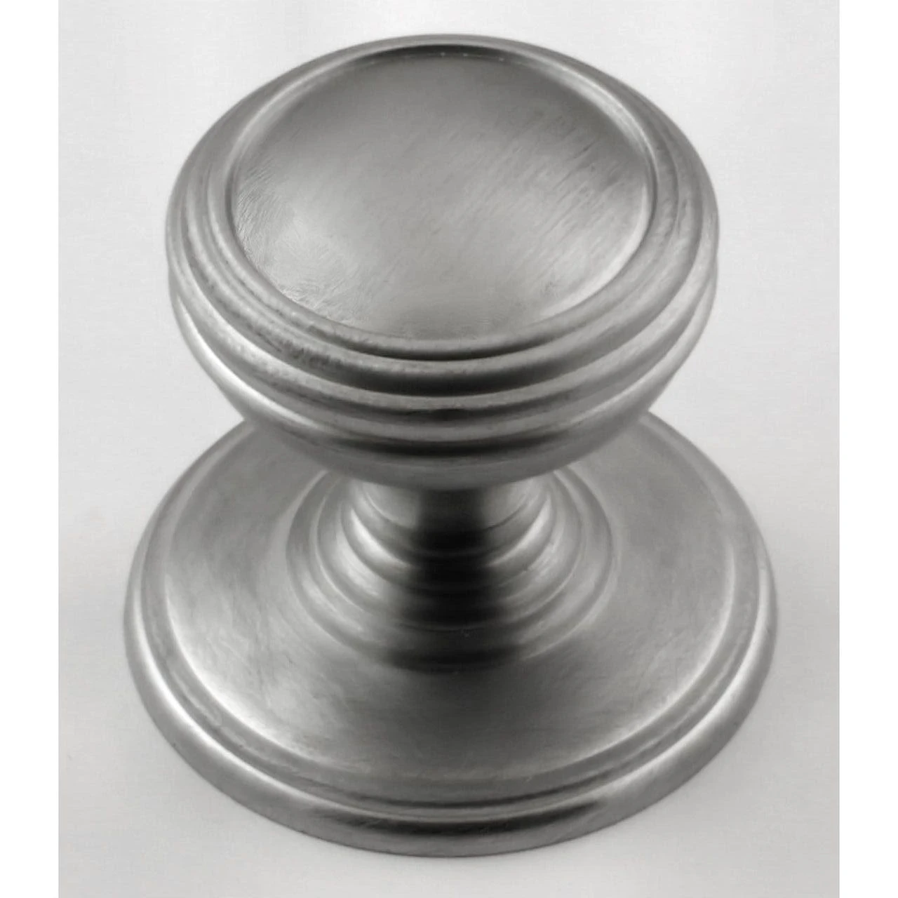 - Heavy quality, traditional mushroom shape ringed pattern cupboard door knobs with a brushed satin chrome plated finish.