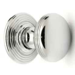 - Heavy quality, mushroom shape ringed pattern cupboard door knobs with a shiny, polished chrome plated finish.