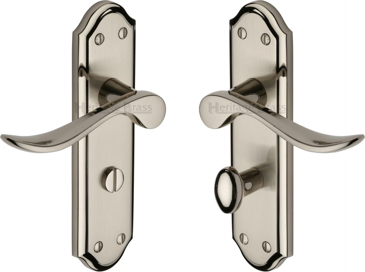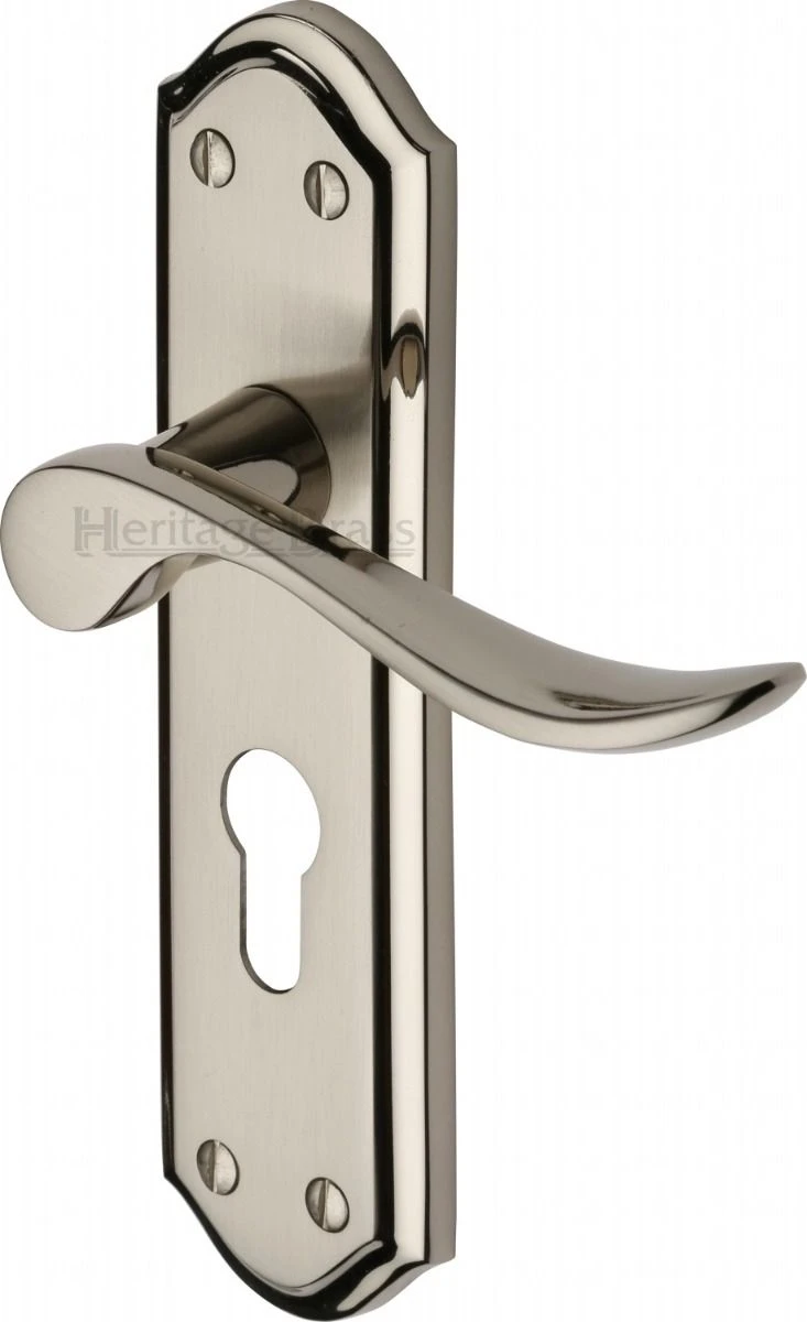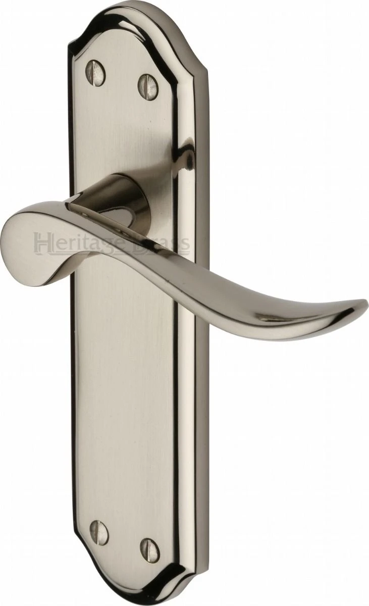 Sandown Lever Door Handles On A Backplate – Satin Nickel With Polished Nickel Edge