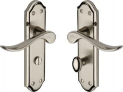 - Available in various plate designs including latch set for non locking doors, lock set for key locking doors, bathroom set that locks via a thumbturn and can be released in an emergency via a coin release on the outside handle, and a euro profile set for use with euro profile cylinders.