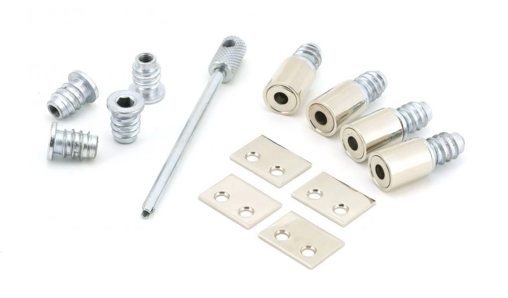- Pack of two stops supplied with four inserts, four strike plate and one key