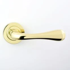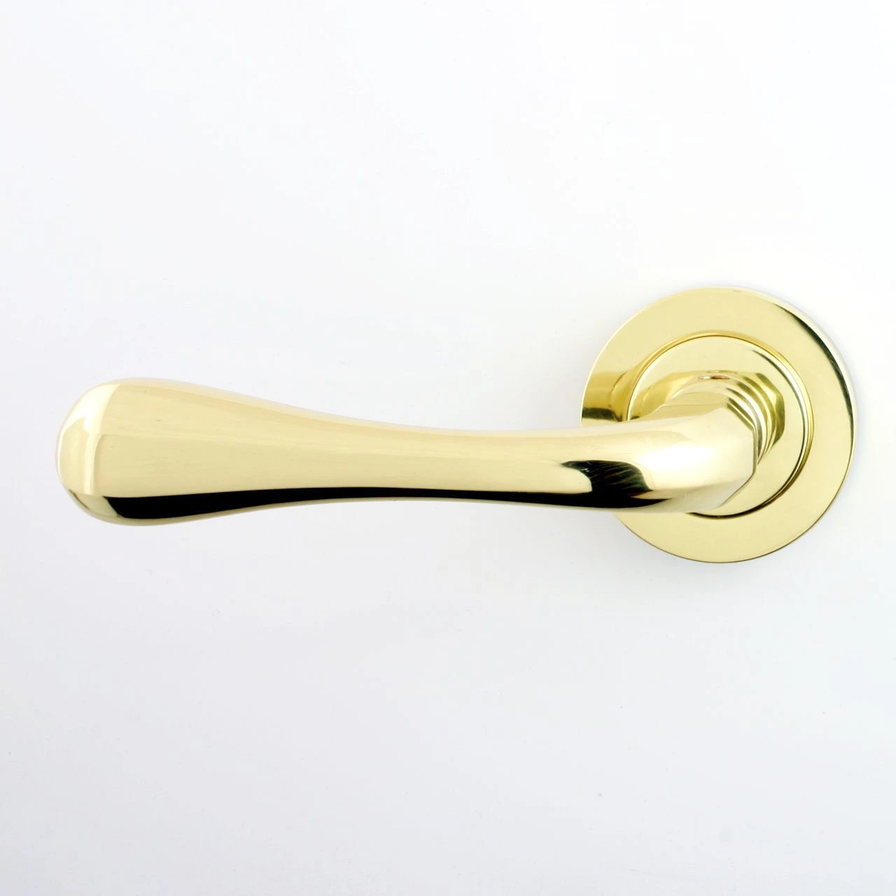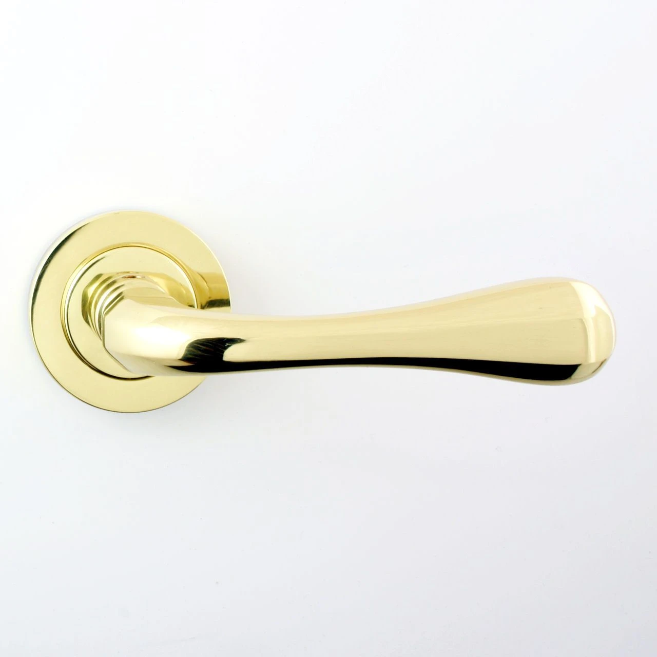 - AQ1PB Stella round rose lever handles from the Carlisle Brass – Designer Door Handle Collection. A classic design lever made from solid brass.