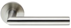 - Straight mitred design round rose lever handles.ย