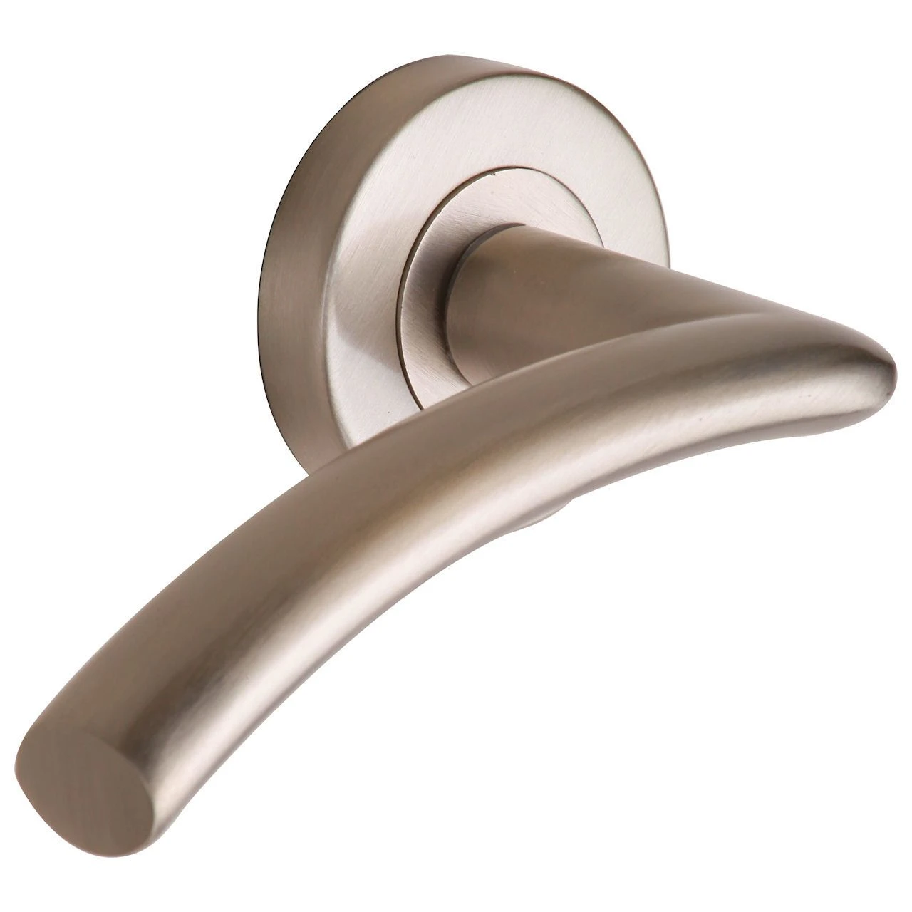 - Tosca Lever Handle – on Round Rose – Satin Nickel – M Marcus