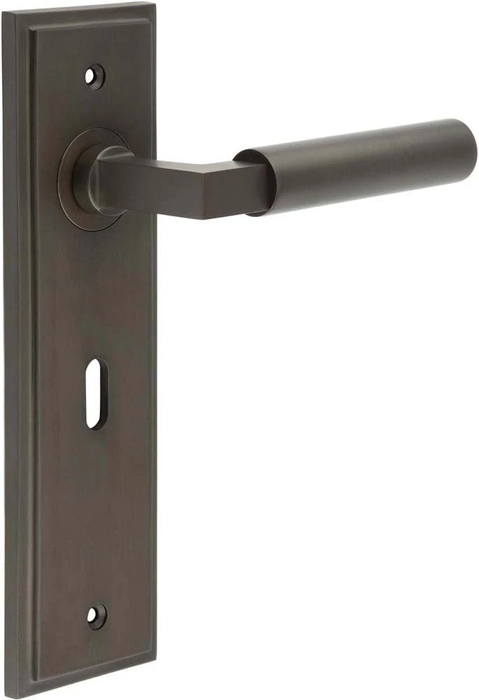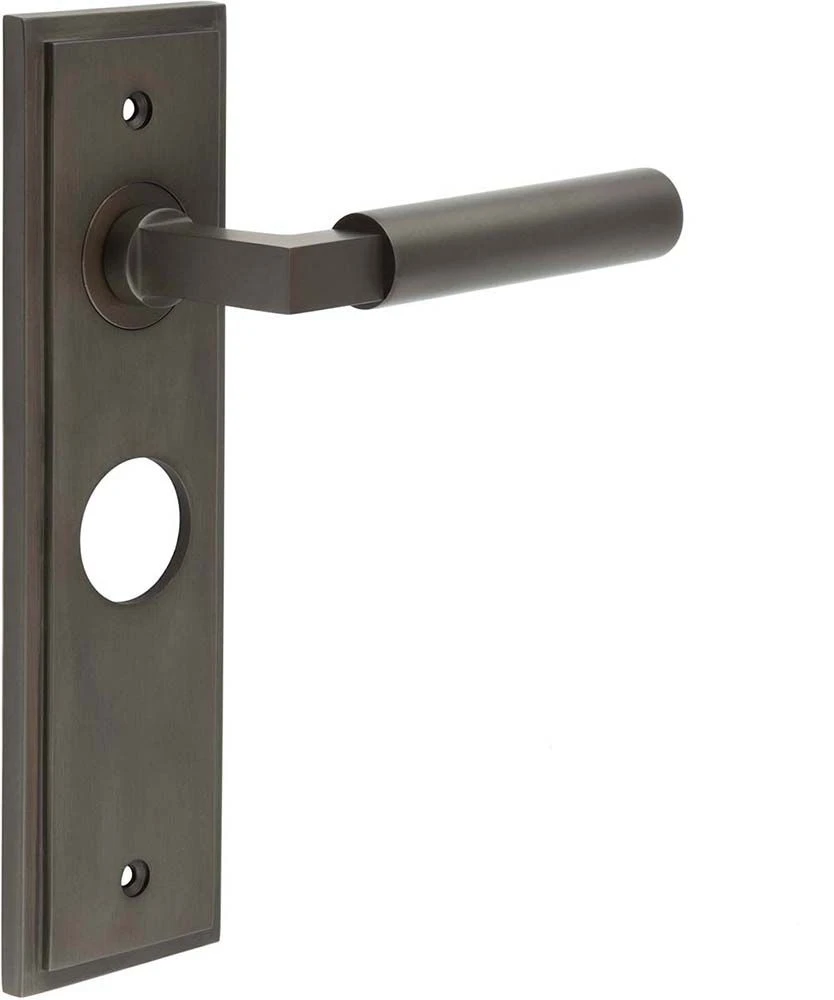 - Tubular Pattern Lever Handle On A Large Rectangular Backplate