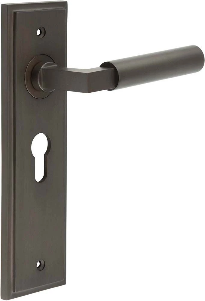 - Available in various plate designs including latch set for non locking doors, lock set for key locking doors, bathroom set that locks via a thumbturn and can be released in an emergency via a coin release on the outside handle, and a euro profile set for use with euro profile cylinders.