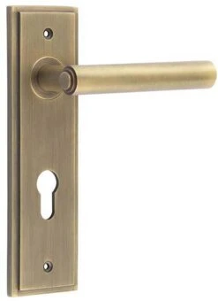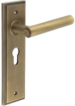 - Available in various plate designs including latch set for non locking doors, lock set for key locking doors, bathroom set that locks via a thumbturn and can be released in an emergency via a coin release on the outside handle, and a euro profile set for use with euro profile cylinders.