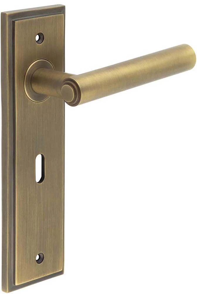 - Tubular Pattern Lever Handle With Stepped Ends On A Large Rectangular Backplate