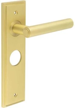 - Available in various plate designs including latch set for non locking doors, lock set for key locking doors, bathroom set that locks via a thumbturn and can be released in an emergency via a coin release on the outside handle, and a euro profile set for use with euro profile cylinders.