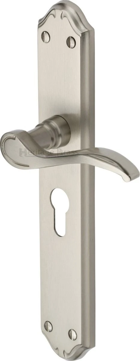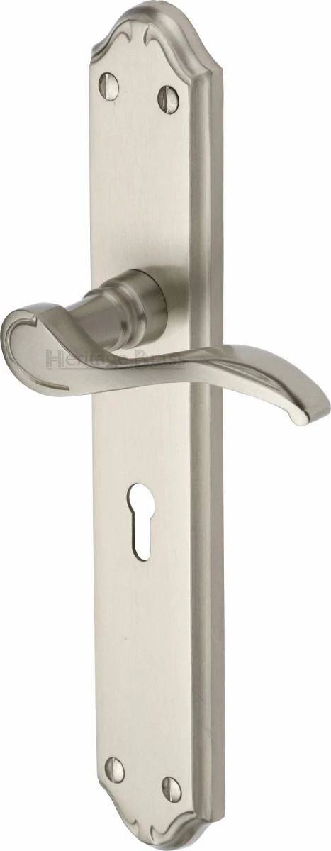 Verona Lever Door Handles On A Long Backplate – Satin Nickel