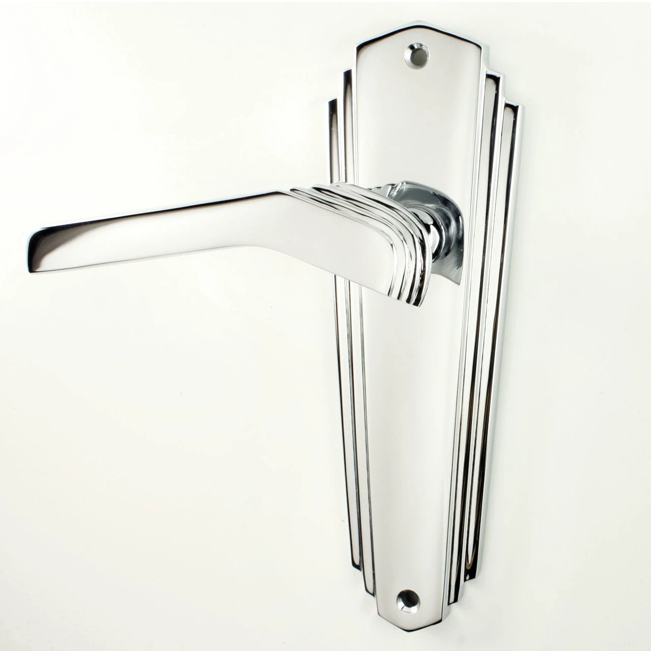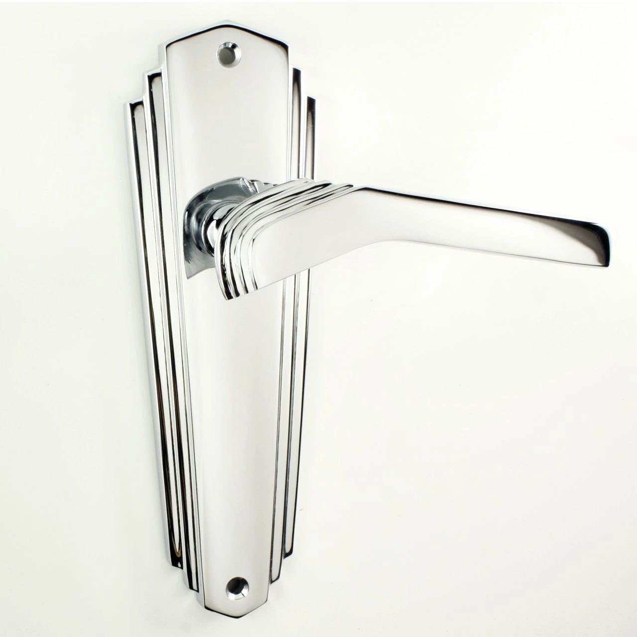 - This polished chrome Art Deco lever suite ย is one of our most popular designs of door handles.