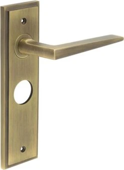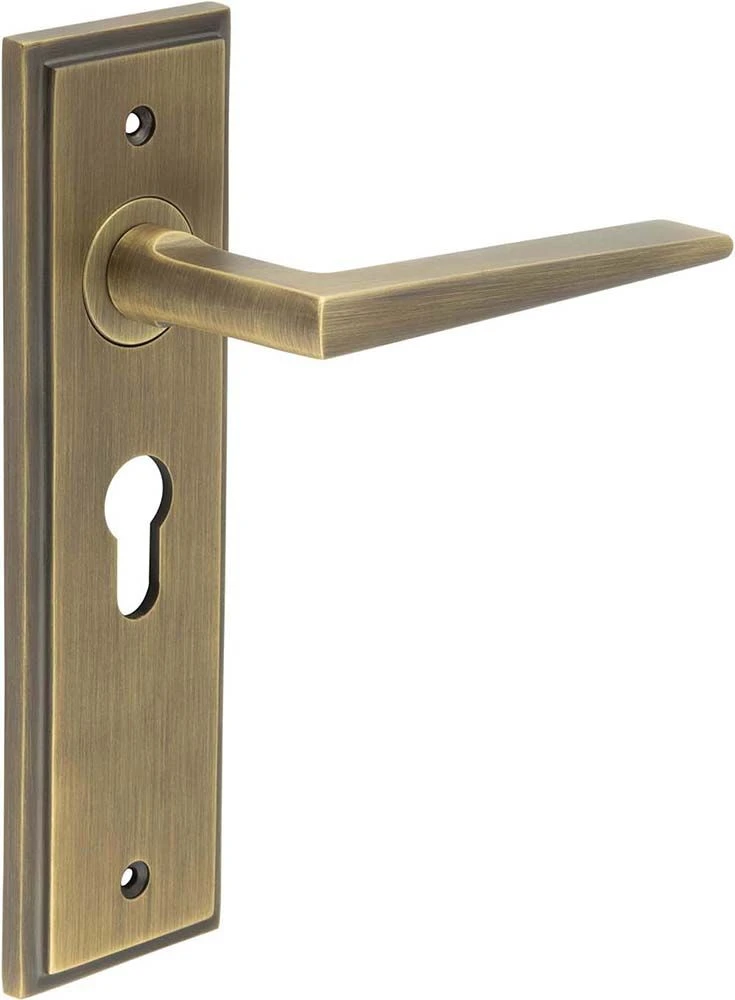 - Available in various plate designs including latch set for non locking doors, lock set for key locking doors, bathroom set that locks via a thumbturn and can be released in an emergency via a coin release on the outside handle, and a euro profile set for use with euro profile cylinders.