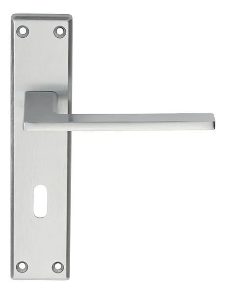 - This satin chrome lever suite is a contemporary design brushed finish door handle with a flat bar rectangular shape lever fitted to a rectangular design backplate.