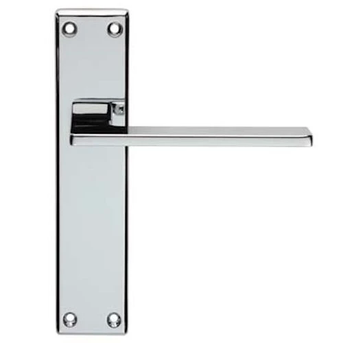 - This polished chrome lever suite is a contemporary design door handle with a flat bar rectangular shape lever fitted to a rectangular design backplate.